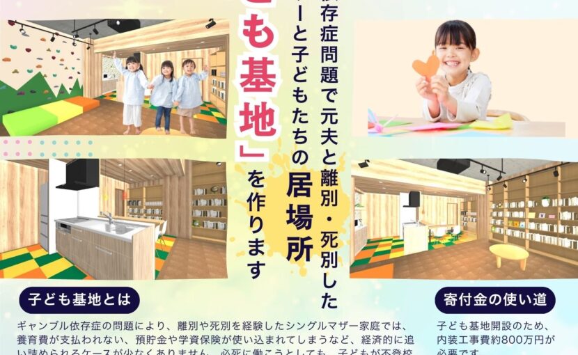 Our organization is currently conducting a crowdfunding campaign to establish “Children’s Base,” a support center for single mothers and their children who have experienced divorce or bereavement (including suicide related to gambling) related to gambling addiction.