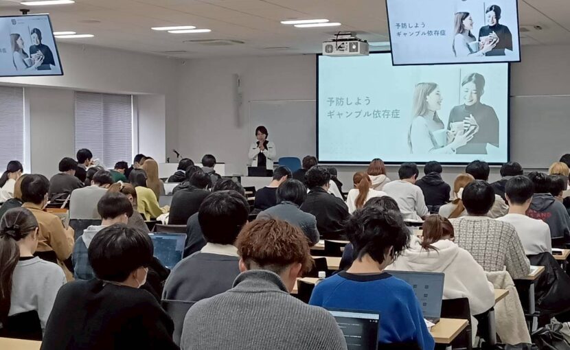 On December 3, 2025, a gambling addiction prevention education program was conducted at Yamato University for approximately 180 students from the Faculty of Informatics.